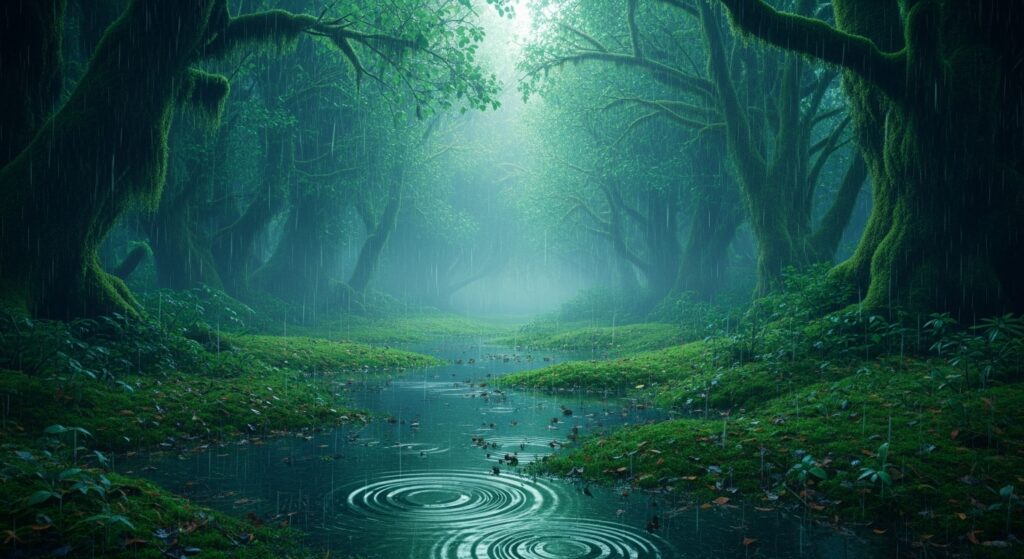Rain rooms, soft ambience, and ASMR atmospheres for calm, focus, and sleep.