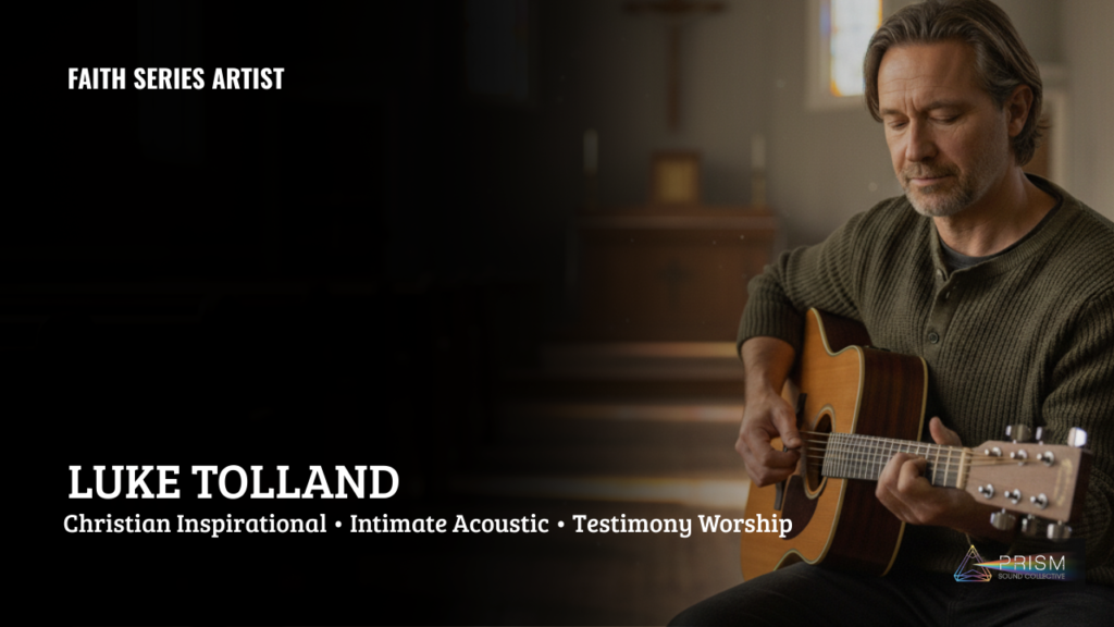 Luke Tolland* is a Christian inspirational recording artist whose music is built around intimacy, testimony, and the lived experience of faith. Blending acoustic worship textures with deeply personal lyrical storytelling, Luke creates songs that feel less like performances and more like quiet, honest conversations with God.